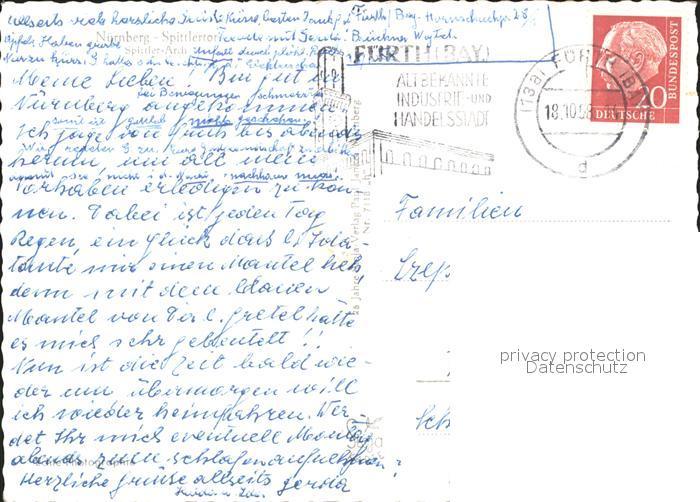71913232 alte Postkarte NueRNBERG CITY Spittlertor postalisch gelaufen Erhaltung siehe scans KatCode: 11110009564000