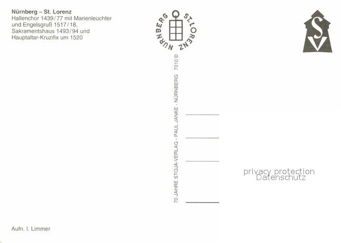 72654455 NueRNBERG CITY St Lorenz Kirche Hallenchor Marienleuchter Engelsgruss Hauptaltar Kruzifix postalisch nicht gelaufen Erhaltung siehe scans [WerneD78] KatCode: 11110009564000