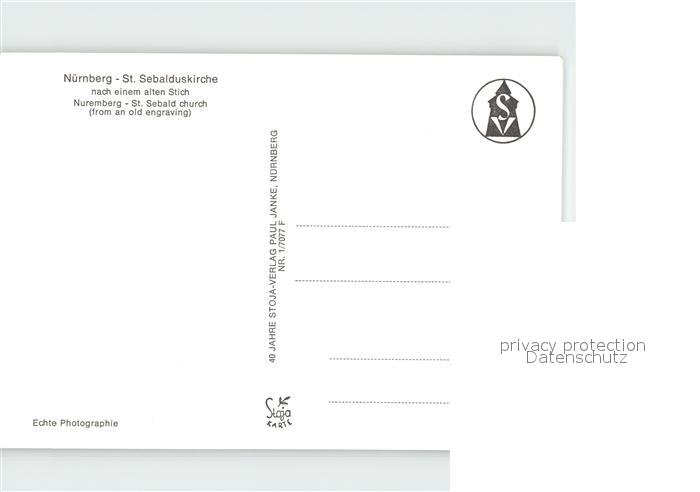 72362181 NueRNBERG CITY St. Sebalduskirche postalisch nicht gelaufen Erhaltung siehe scans KatCode: 11110009564000