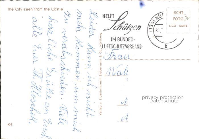 72316267 alte Postkarte NueRNBERG CITY Stadtansicht Burg postalisch gelaufen Erhaltung siehe scans KatCode: 11110009564000