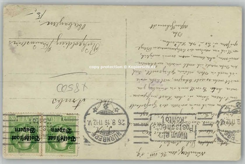 40230273 NueRNBERG CITY Stempelabschlag] x 1919 postalisch gelaufen Alte Ansichtskarte Postkarte alte Postkarte Katcode 11110009564000