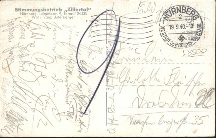 40970405 NueRNBERG CITY Stimmungsbetrieb Zillertal NZ4 postalisch gelaufen Alte Ansichtskarte Postkarte alte Postkarte Katcode 11110009564000