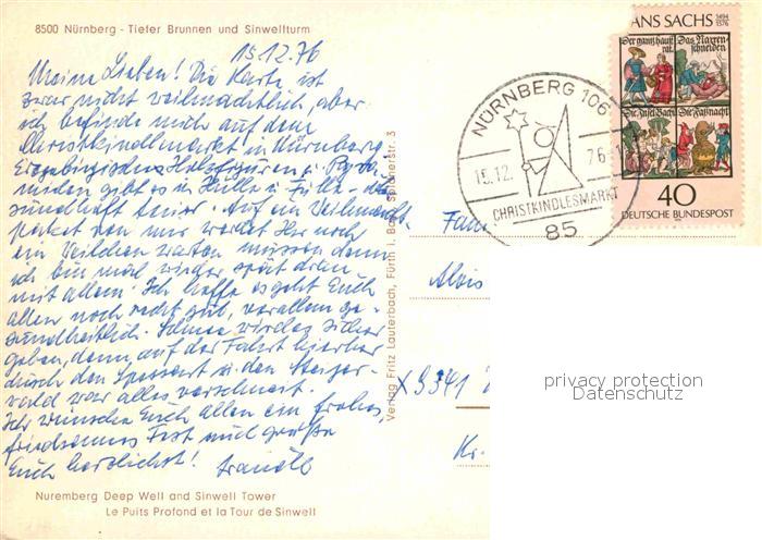 72654454 alte Postkarte NueRNBERG CITY Tiefer Brunnen und Sinwellturm postalisch gelaufen Erhaltung siehe scans [WerneD78] KatCode: 11110009564000