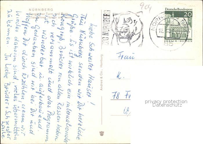 72605509 alte Postkarte NueRNBERG CITY Tiergaertner Turm und Burg postalisch gelaufen Erhaltung siehe scans [FriedD77] KatCode: 11110009564000