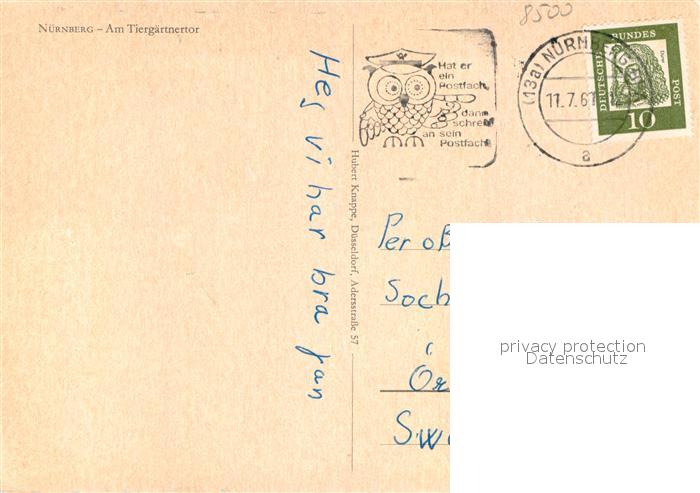 72939272 alte Postkarte NueRNBERG CITY Tiergaertnertor postalisch gelaufen Erhaltung siehe scans [PaolaD17] KatCode: 11110009564000