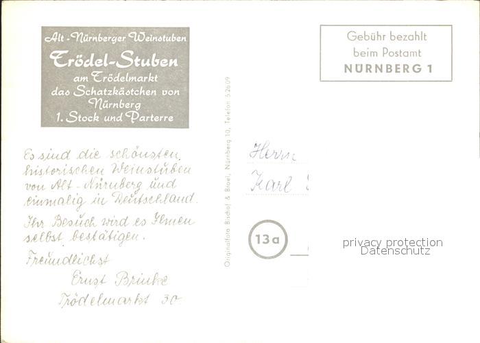 72093851 NueRNBERG CITY Troedelstuben Weinstube postalisch nicht gelaufen Erhaltung siehe scans KatCode: 11110009564000