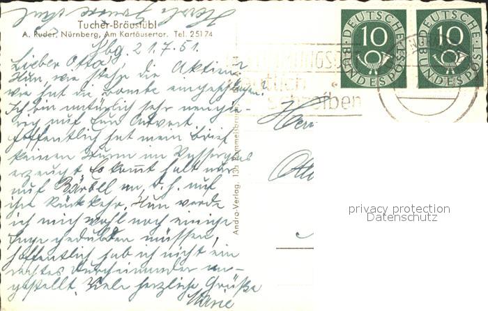 41687896 NueRNBERG CITY Tucher Braeustuebi postalisch gelaufen Erhaltung siehe scans Alte Ansichtskarte Postkarte alte Postkarte Nata Katcode 11110009564000