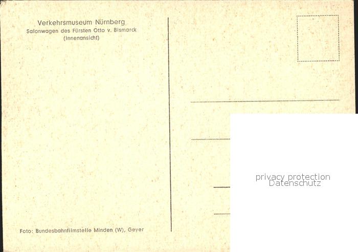 71972685 NueRNBERG CITY Verkehrsmuseum Salonwagen des Fuersten Otto von Bismarck innen postalisch nicht gelaufen Erhaltung siehe scans KatCode: 11110009564000