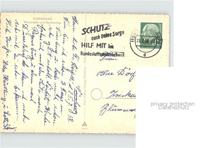 72412650 alte Postkarte NueRNBERG CITY Weinstadel und Henkersteg Pegnitz postalisch gelaufen Erhaltung siehe scans KatCode: 11110009564000