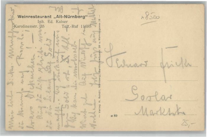 40757852 Nuernberg einrestaurant Alt Nürnberg * KatCode 11110009564000