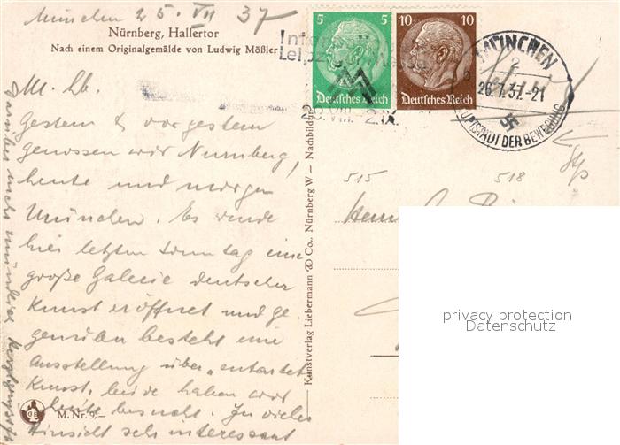 73297418 alte Postkarte Nuernberg Hallertor nach Originalgemaelde von Ludwig Moessler Kuenstlerkarte postalisch gelaufen Erhaltung siehe scans [FriedD77] KatCode: 11110009564000
