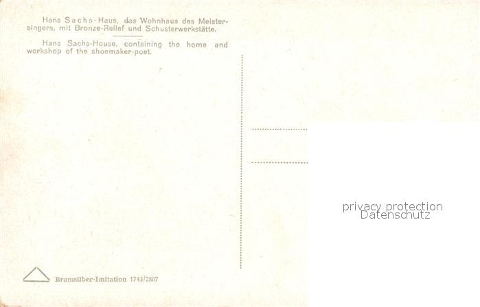 73370531 Nuernberg Hans Sachs Haus Bronze Relief postalisch nicht gelaufen Erhaltung siehe scans [KathaD81] KatCode: 11110009564000