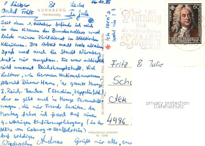 72989827 alte Postkarte Nuernberg Henkersteg postalisch gelaufen Erhaltung siehe scans [WerneD78] KatCode: 11110009564000