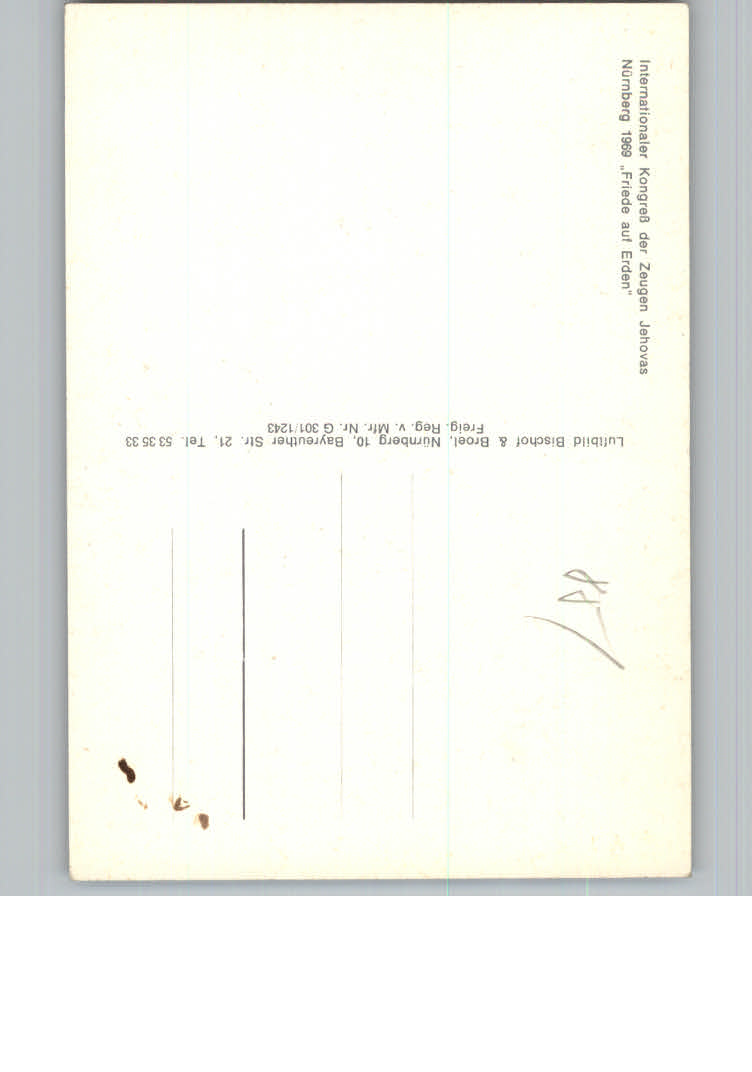 31162350 Nuernberg Internationaler Kongress der Zeugen Jehovay 1969 postalisch nicht gelaufen KatCode: 11110009564000