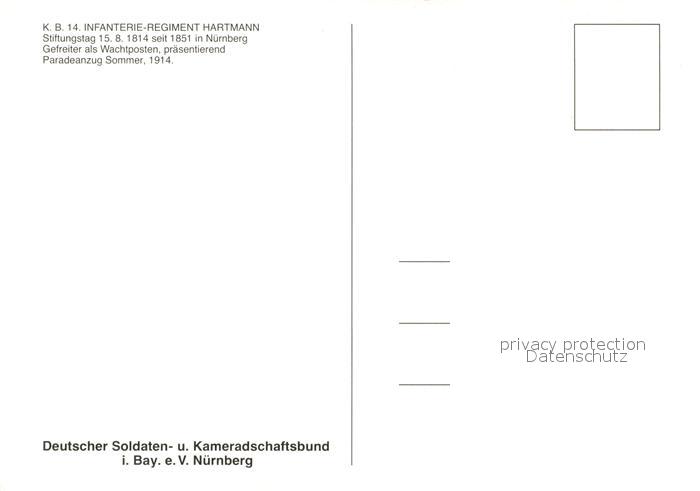 73304552 Nuernberg K.B. 14. Infanterie Regiment Hartmann Wachtposten Kuenstlerkarte postalisch nicht gelaufen Erhaltung siehe scans [FriedD77] KatCode: 11110009564000