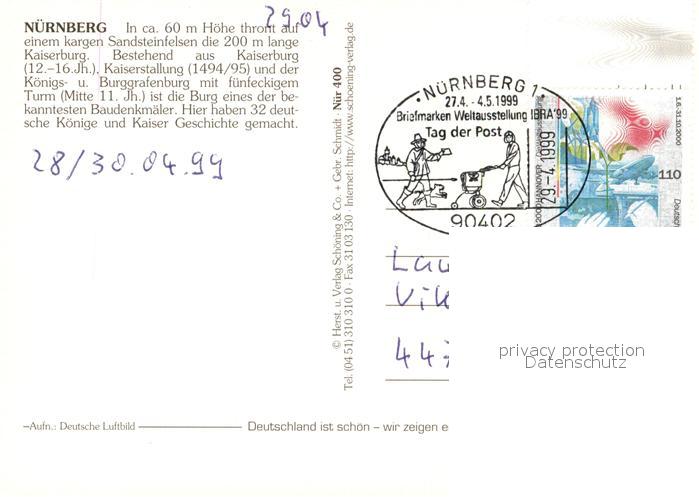 73542050 alte Postkarte Nuernberg Kaiserburg Fliegeraufnahme postalisch gelaufen Erhaltung siehe scans [WerneD78] KatCode: 11110009564000