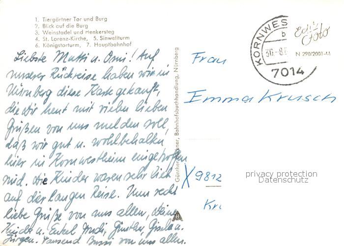 73037974 alte Postkarte Nuernberg Lorenz Kirche Hauptbahnhof Burg postalisch gelaufen Erhaltung siehe scans [KathaD81] KatCode: 11110009564000