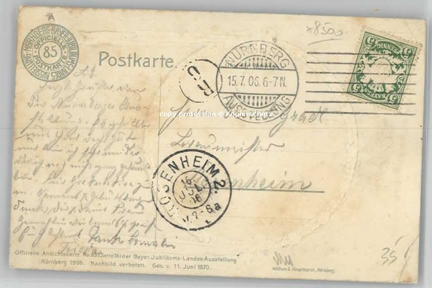 40230465 Nuernberg Nuernberg Hauptrestaurant Bayerische Jubilaeums-Ausstellung Praegedruck x 1906 KatCode 11110009564000