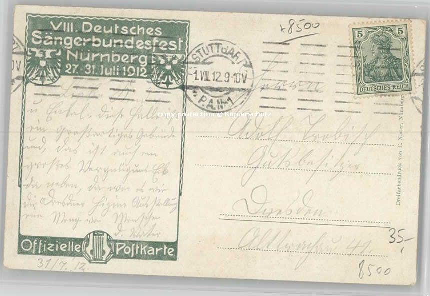40230473 Nuernberg Nuernberg Saengerhalle x 1912 KatCode 11110009564000