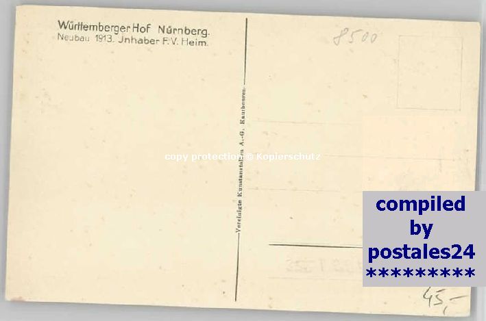 40230521 Nuernberg Nuernberg Wuerttemberger Hof * 1913 KatCode 11110009564000