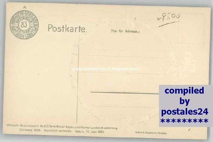 40230572 Nuernberg orst-Gebäude Prägedruck Bayerische Jubiläums-Ausstellung * 1906 KatCode 11110009564000