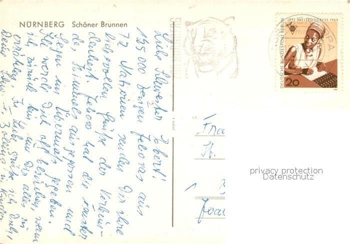 73081226 alte Postkarte Nuernberg Schoener Brunnen Marktplatz postalisch gelaufen Erhaltung siehe scans [FriedD77] KatCode: 11110009564000