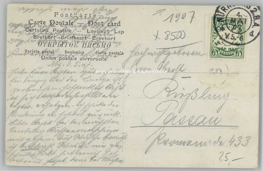 40230272 Nuernberg Stempelabschlag] x 1907 KatCode 11110009564000