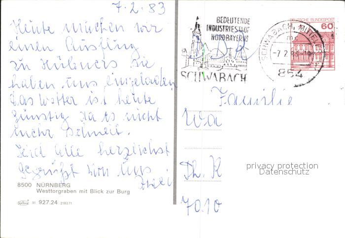 alte Postkarte Nuernberg Westtorgraben Burg postalisch gelaufen Erhaltung siehe scans