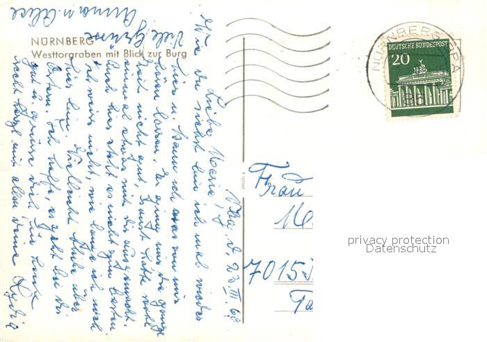 72984546 alte Postkarte Nuernberg Westtorgraben mit Burg postalisch gelaufen Erhaltung siehe scans [LiesaD40] KatCode: 11110009564000