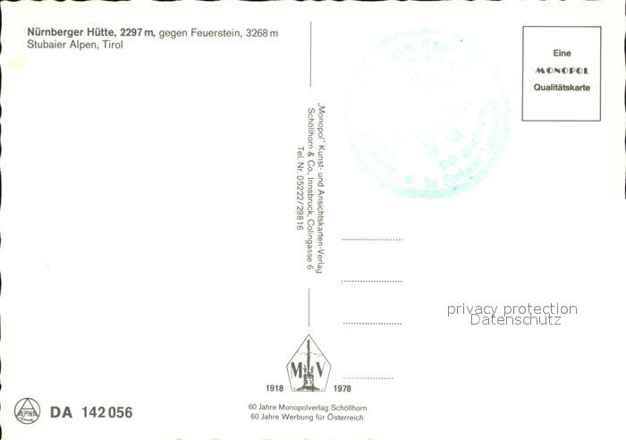 72451017 Nuernbergerhuette gegen Feuerstein postalisch nicht gelaufen Erhaltung siehe scans KatCode: 11390332070334