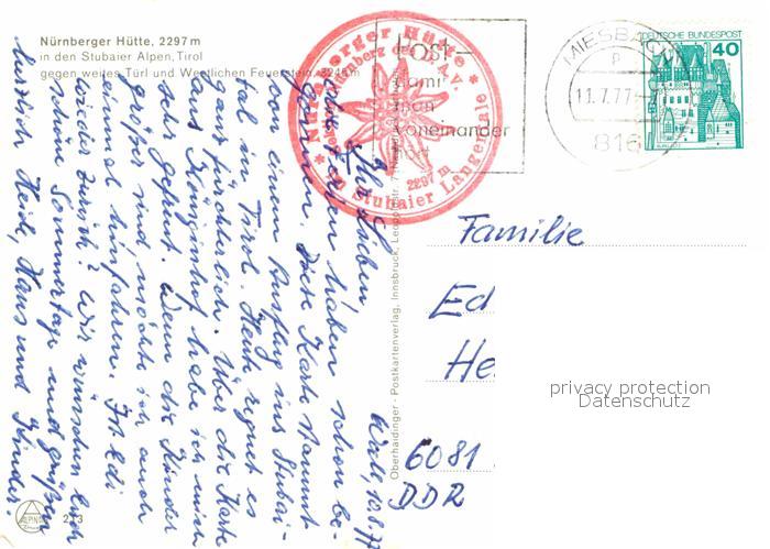 72631176 alte Postkarte Nuernbergerhuette Weites Tuerl Westlichen Feuerstein postalisch gelaufen Erhaltung siehe scans [NatalD47] KatCode: 11390332070334