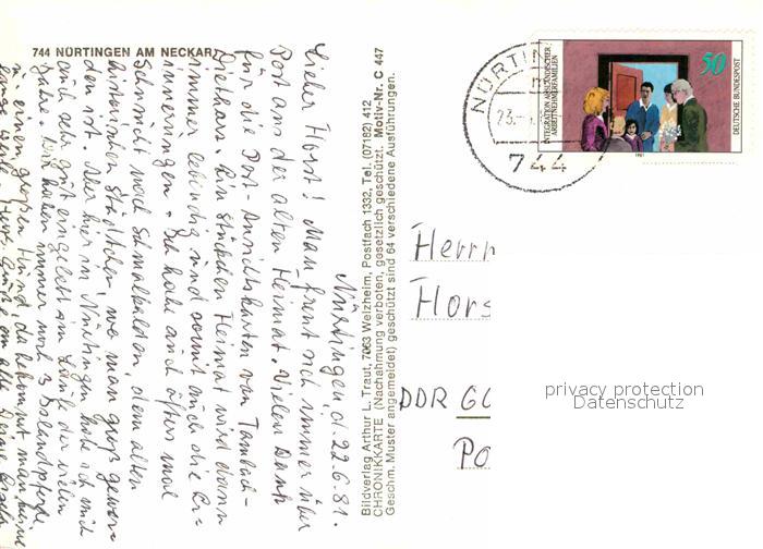 72823331 alte Postkarte Nuertingen Blockturm Neckar Laurentiuskirche Kroatenhof Marktplatz Geschichte postalisch gelaufen Erhaltung siehe scans [FriedD77] KatCode: 11110008116049