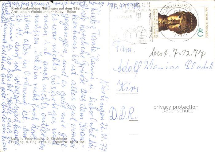 31715296 alte Postkarte Nuertingen Fliegeraufnahme Kreiskrankenhaus Weinbrenner Kuby Rehm postalisch gelaufen Erhaltung siehe scans KatCode: 11110008116049