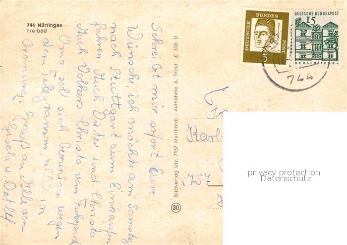72650698 alte Postkarte Nuertingen Freibad postalisch gelaufen Erhaltung siehe scans [WerneD78] KatCode: 11110008116049