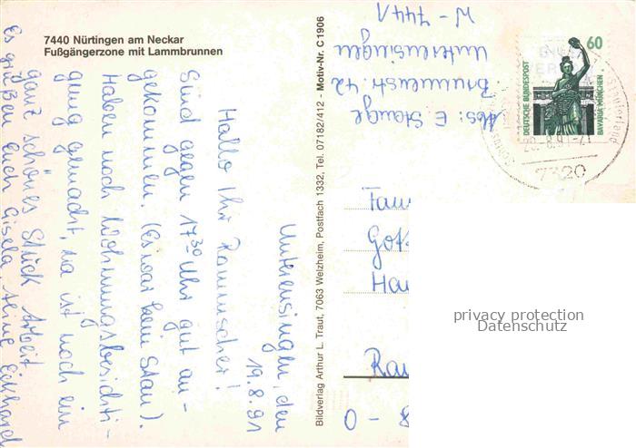 74023736 alte Postkarte Nuertingen Fussgaengerzone mit Lammbrunnen postalisch gelaufen Erhaltung siehe scans [FriedD77] KatCode: 11110008116049