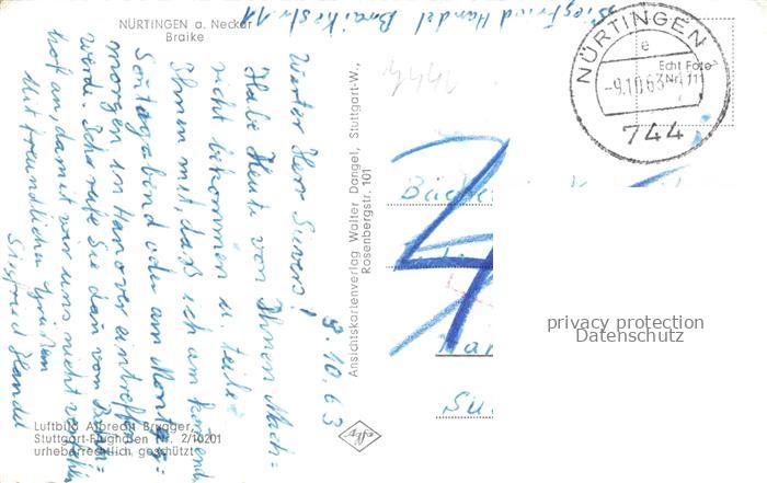 34146394 alte Postkarte Nuertingen Neckar BW Braike Fliegeraufnahme postalisch gelaufen Erhaltung siehe scans [WerneD78] KatCode: 11110008116049