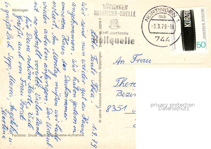 73209052 alte Postkarte Nuertingen Strassenpartie Kirche postalisch gelaufen Erhaltung siehe scans [WerneD78] KatCode: 11110008116049