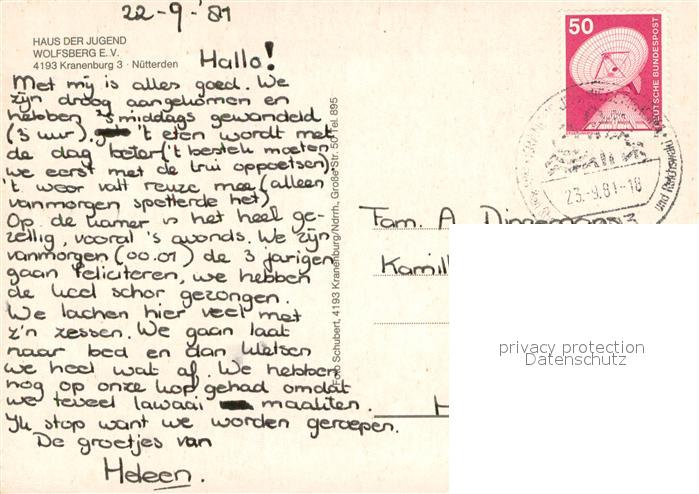 73681447 alte Postkarte Nuetterden Haus der Jugend Wolfsberg E.V. postalisch gelaufen Erhaltung siehe scans [LiesaD40] KatCode: 11110005154040