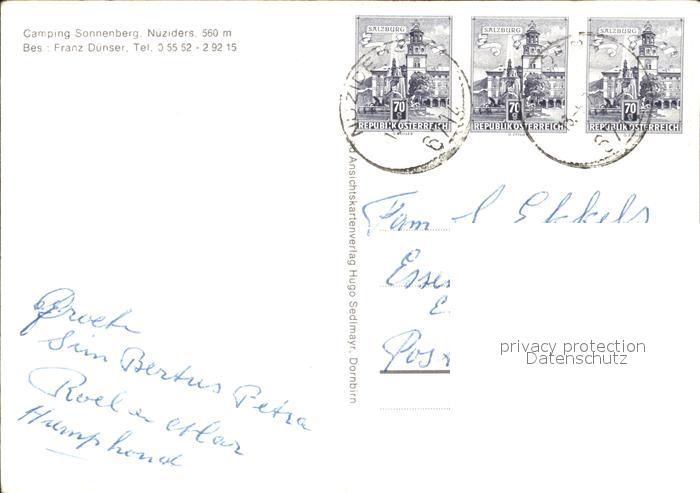 72034484 alte Postkarte Nueziders Vorarlberg Camping Sonnenberg Swimming Pool Alpenpanorama postalisch gelaufen Erhaltung siehe scans KatCode: 11390341080117