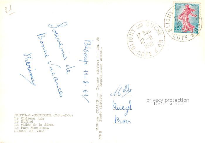 13594446 Nuits-Saint-Georges Chateau gris Beffroi Vallee de la Sérée Parc Municipal Hôtel de Ville postalisch gelaufen Erhaltung siehe scans [FriedD77] carte postale Frie Katcode 11170021121464