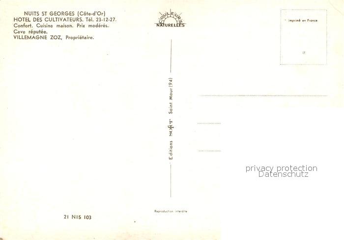 13149093 Nuits-Saint-Georges Hotel des Cultivateurs postalisch nicht gelaufen Erhaltung siehe scans [FriedD77] KatCode: 11170021121464