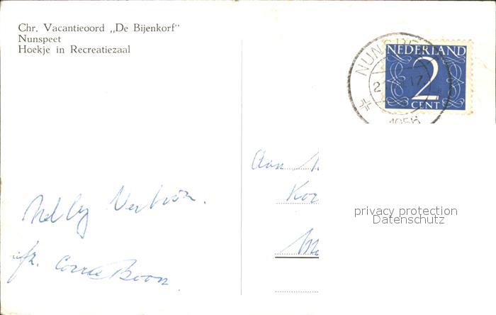 alte Postkarte Nunspeet Chr. Vacantieoord De Bijenkorf Hoekje Recreatiezaal postalisch gelaufen Erhaltung siehe scans