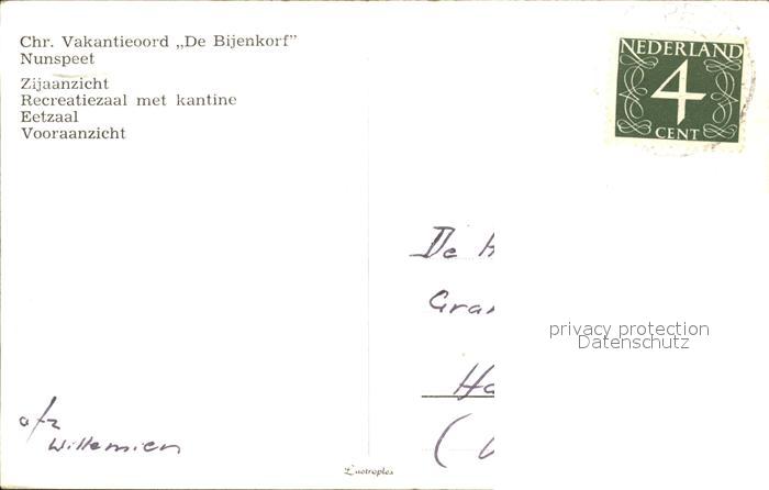 alte Postkarte Nunspeet Chr. Vakantieoord De Bijenkorf postalisch gelaufen Erhaltung siehe scans