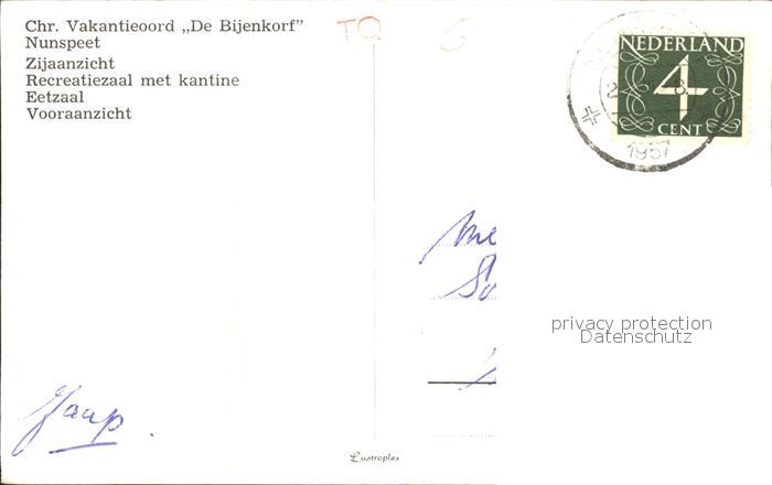 alte Postkarte Nunspeet Chr. Vakantieoord De Bijenkorf postalisch gelaufen