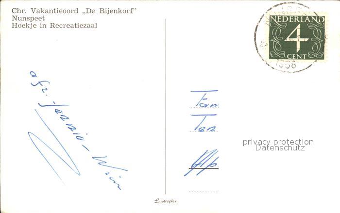 old postcard Nunspeet Chr. Vakantieoord De Bijenkorf Hoekje Recreatiezaal postalisch gelaufen Erhaltung siehe scans