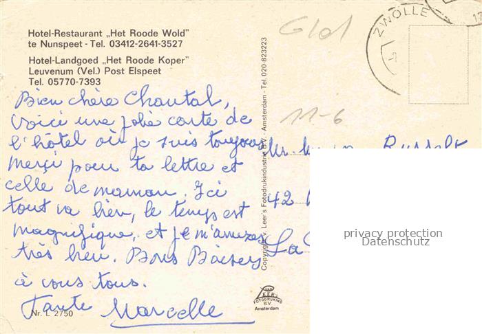 74155933 old postcard Nunspeet Gelderland NL Hotel Het Roode Wold Hotel Landgoed Het Roode Koper postalisch gelaufen Erhaltung siehe scans [WerneD78] KatCode: 11370400