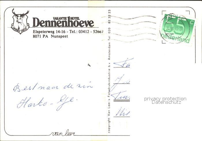 old postcard Nunspeet Hotel Dennenhoeve Speisesaal Kueche Musiker Swimmingpool postalisch gelaufen Erhaltung siehe scans