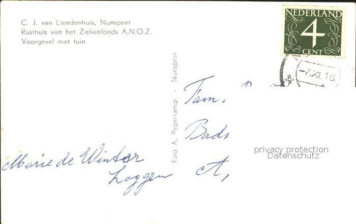 alte Postkarte Nunspeet Liendenhuis Rusthuis Ziekenfonds A.N.O.Z postalisch gelaufen Erhaltung siehe scans