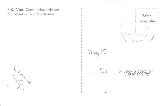 alte Postkarte Nunspeet r.K. Vac. Moterdveen Eetzaal Cantine Kapel postalisch gelaufen Erhaltung siehe scans