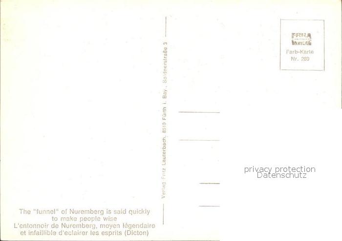71934737 Nuremberg funnel Nuremberg said quickly to make people wise postalisch nicht gelaufen Erhaltung siehe scans KatCode: 14140410000000